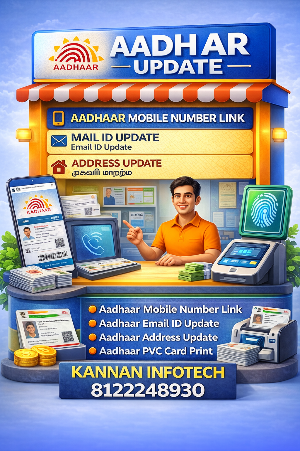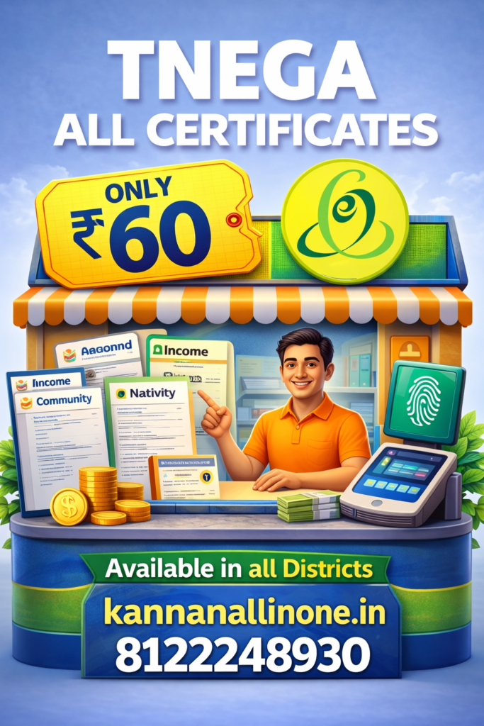 மத்திய மற்றும் மாநில அங்கீகாரம் பெற்ற இ சேவை மையம்